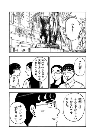 ハチ公もスクランブル交差点も震撼!? 白山と三田さん・イッコちゃんたちがハチ公前で出会ったカラーイラストと、オリジナル描き下ろし漫画4ページ、コラボPVを大公開しました!