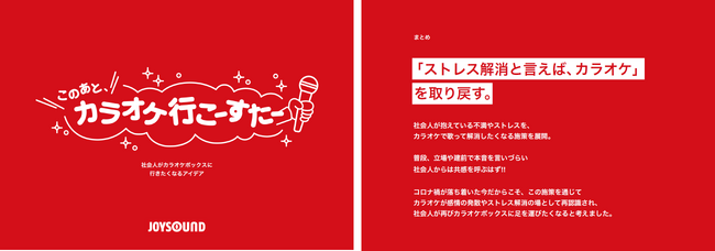 長引くコロナ禍を背景に苦境に立たされてきたカラオケ業界。現在は、客足も戻り始め、市場回復に向けた明るい兆しも見え始めている一方、忘新年会の2次会での利用など、大人数での宴会需要がコロナ前の水準まで回復するには時間がかかるとみられています。このような状況下、カラオケから足が遠のいている社会人の方々の「カラオケボックスに行きたい」という気持ちを再び想起させ、市場全体の活性化を目指すべく、カラオケボックスへの新たな来店動機となり、来店者を増加させることができる、カラオケの新たな価値を創出するアイデア募集するに至りました。