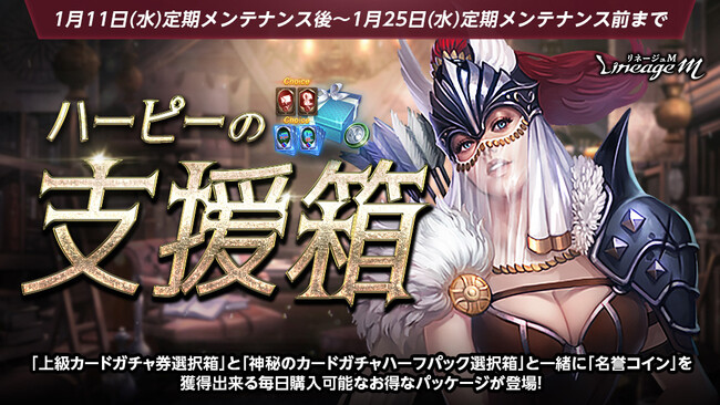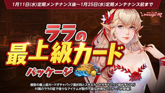 PCオンラインRPG「リネージュ」のモバイル版タイトル『Lineage M(以下、リネージュM)』のサービス、運営をしているエヌ・シー・ジャパン株式会社(東京都港区、代表取締役:金 澤憲(キム テクホン) 以下、エヌシージャパン)は、2023年1月11日(水)のアップデートとして、「伝説級/神話級武器」、「ハーフエリクサー拡張」、「魔術師」神話級スキルアップデートの実施、および「ララの最上級カードパッケージ」を含む新たなパッケージの登場をお知らせします。