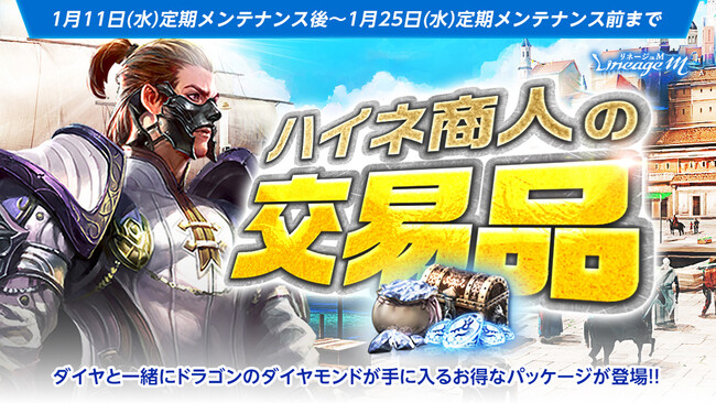 ダイヤと一緒に、キャラクターの育成に役立つ「ドラゴンのダイヤモンド」500個がセットになった「ハイネ商人の交易品」が登場しました。