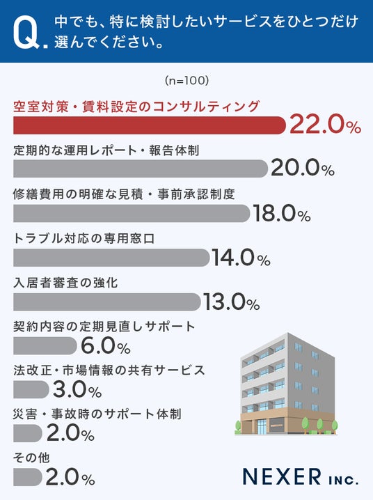 1位は「空室対策・賃料設定のコンサルティング」で22%でした。