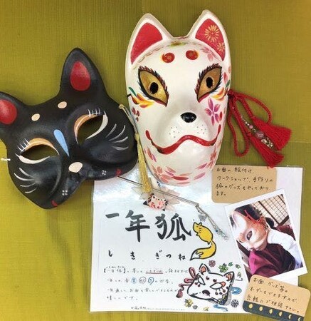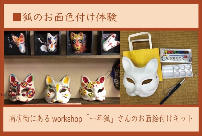・商店街にあるworkshop一年狐さんのお面絵付けをご自宅でお楽しみいただけるキット(発送はハーフサイズver.)