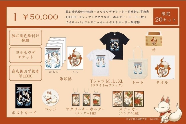 ●I <限定20口> 狐お面色付け体験、ヨルモウデチケット、お買物券、雑貨セット 50,000円