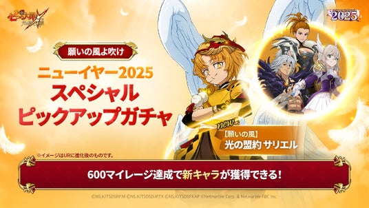 ネットマーブルは、スマートフォン向けシネマティックアドベンチャーRPG『七つの大罪 ~光と闇の交戦(ひかりとやみのグランドクロス)~』(略称:グラクロ)において、1月9日(木)に、新キャラ【願いの風】光の盟約 サリエルが登場する「ニューイヤーフェス2025第2弾」を開催するゲームのアップデートを実施いたしました。