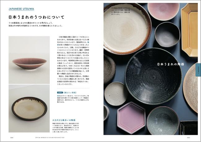 本書では、自分の生活に合ったうつわ選びや、取り扱い方、楽しみ方をわかりやすく解説しています。また、書籍発売と同日の5月18日(木)から申し込み開始となる「うつわ検定(R)」の公式テキストとしても活用できます。