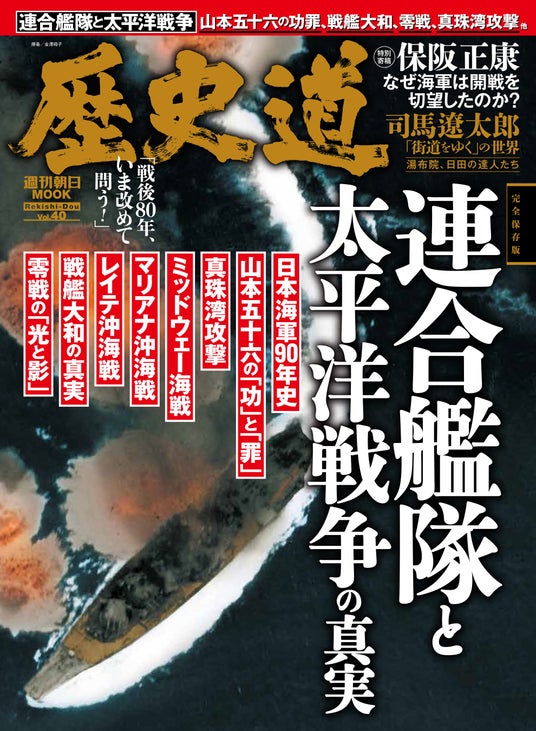 7月7日(月)発売の『歴史道』Vol.40(週刊朝日MOOK)では、「連合艦隊と太平洋戦争の真実」を特集。保阪正康氏寄稿「海軍はなぜ海戦を切望したのか?」をはじめ、日本海軍90年史、山本五十六の「功罪」、「映画で描かれた山本五十六」名場面ほか、真珠湾攻撃、ミッドウェー海戦、マリアナ沖海戦など、太平洋戦争の連合艦隊の主な戦いを網羅しています。