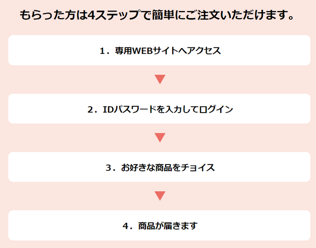 カード1枚だから、コンパクトで軽やか。贈られた方は専用サイトにアクセスし、お好きな商品をチョイス。