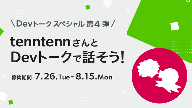株式会社エイチームのグループ会社であるQiita株式会社(本社:名古屋市中村区、代表取締役社長:柴田健介)が運営する「Qiita Jobs」は、エンジニアが特定のテーマを軸にマッチングし、知識共有や交流ができる機能「Devトーク」の特別企画として、Goの分野で著名な、バックエンドエンジニアのtenntenn氏との「Devトークスペシャル」の募集を、7月26日(火)より開始しました。