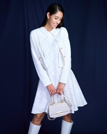 淡いトーンの配色にまとめることで、トラッドに転びすぎることなくあくまでエレガントな印象に。
