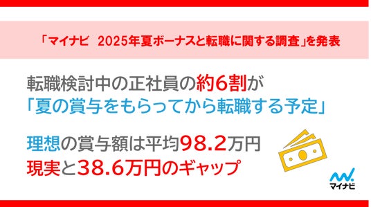 株式会社マイナビ(本社:東京都千代田区、代表取締役 社長執行役員:土屋芳明)は、従業員数3名以上の企業に所属している全国の20-50代の正社員を対象に実施した「マイナビ 2025年 夏ボーナスと転職に関する調査」の結果を発表しました。
