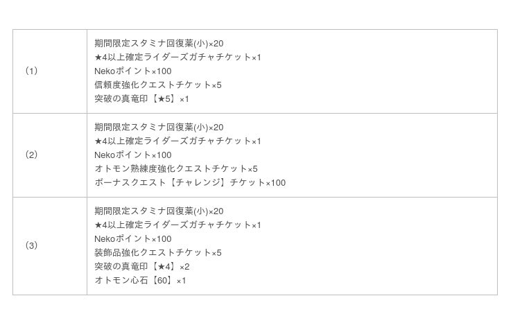 3月24日(水)10:59まで、「カムバック100万人突破プレゼント キャンペーン」を開催!復帰ユーザー100万人突破の感謝の気持ちをこめて、以下のアイテムセット3種を期間中毎日、日替わりでプレゼントします。