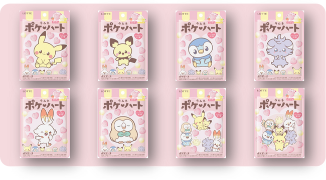 株式会社ロッテは3月5日(火)に、ポケピースのポケモンたちがデザインされた「ポケハートラムネ」をリニューアルいたします。「甘ずっぱいきゅんベリー味」と新フレーバー「きゅんレモン味」の2種類の味が楽しめます。みつけたらラッキーな、ポケピースのなかまたちが描かれたハート型のラムネが2倍に増えて、もっとワクワク!食べておいしい!全8種の新パッケージにも注目です。
