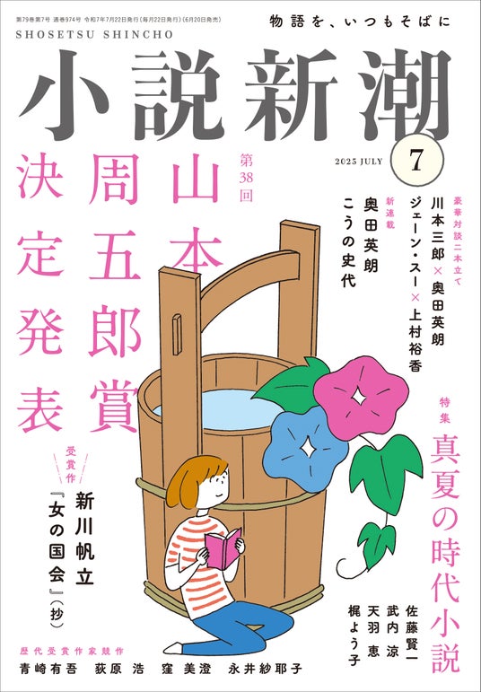 また、「真夏の時代小説」と題した特集では、佐藤賢一さん、武内涼さん、天羽恵さん、梶よう子さんらによる短編小説を掲載。ジェーン・スーさんと上村裕香さんによる対談では、親の介護をめぐるモヤモヤと、それを笑い飛ばす知恵について語ります。第38回山本周五郎賞の選評や、受賞作家の新川帆立さんによる受賞記念エッセイ「ホタテカップ開催録」など、見どころ満載の一号です。