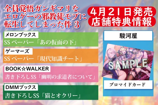 マイクロマガジン社(東京都中央区)は、GCN文庫『全員覚悟ガンギマリなエロゲーの邪教徒モブに転生してしまった件 3』(小説:へぶん99 イラスト:生煮え)を2025年4月21日に発売いたします。
