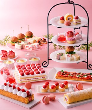 昨年12月より「ザ・ラウンジ」にて開催し、連日満席のいちごビュッフェ『サンドウィッチ&スイーツビュッフェ~ストロベリーコレクション~』が、3月2日(木)より第2弾としてリニューアル。“いちごの王様”と呼ばれる「博多あまおう」を使用した「新スーパーあまおうショートケーキ」や「あまおうナポレオンパイ」、「いちごロール」などの王道スイーツのほか、サクサク食感とスライスしたいちごに濃厚ないちごソースがあとを引く「焼き立ていちごパイデニッシュ」、和栗の濃厚な風味といちごの果肉ソースが相性抜群の「生絞りアイスモンブラン いちごソース添え」、ソフトクリームとの相性も抜群の「ミニクリームあんみつ」に「いちごメロンパン」も登場!真っ赤ないちごをイメージしたバルーンやデコレーションで彩られたいちごづくしの空間で心ゆくまでご堪能ください。