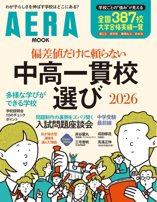 最新の中学受験&学校選びがわかるAERAムック『偏差値だけに頼らない 中高一貫校選び2026』(朝日新聞出版)が、2025年7月15日(火)に発売されました。学校取材ルポや、中高一貫校の先生らによる入試問題座談会、学校説明会の徹底活用法、全国387校の大学合格実績一覧データなど、盛りだくさんで掲載。わが子らしさを伸ばす学校選びを、多角的にアドバイスします。