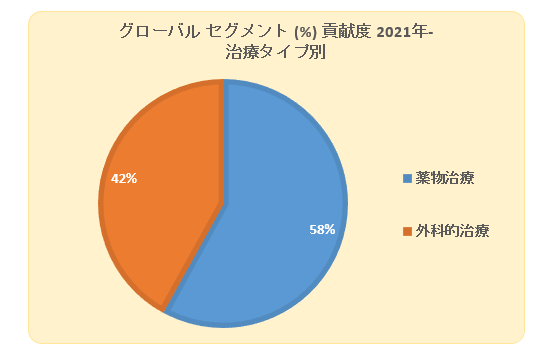 薬物治療セグメントは、亜急性および急性レベルで障害を治療および管理するための薬物の採用が多いため、より大きなシェアを占めていました。さらに、医師は手術後の治療のために薬を処方するため、最終的には手術器具よりも多くの消費につながります。