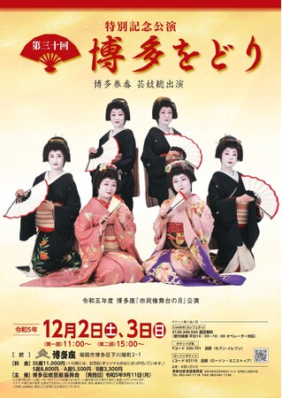 博多伝統芸能振興会主催、「特別記念公演『第三十回 博多をどり』」が2023年12月2日 (土) ~2023年12月3日 (日)に博多座(福岡県福岡市博多区下川端町2-1)にて開催されます。