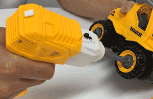 本体に一緒に憧れの電動ドライバー付きの『DIY TRUCK R/C』。普段は絶対に触らせることのできない電動ドライバーですが、これはあくまでプラスティック製の玩具なので、お子さんでも安心してお使いいただけます。ネジを緩めたり締めたり、自由自在です。