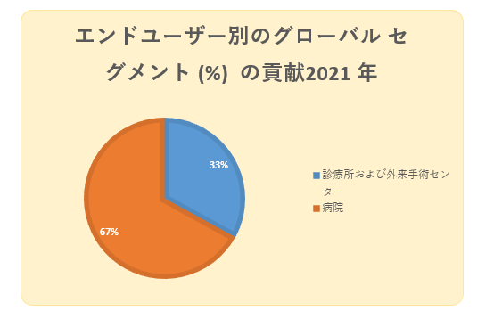 質問: 麻酔深度モニタリングデバイス市場のエンドユーザーセグメントで最も人気のあるサブセグメントはどれですか?エンドユーザー セグメントは、診療所と外来手術センター、および病院の 2 つのタイプにサブセグメント化できます。これらのうち、病院セグメントは、最も多くの麻酔監視装置メーカーを引き付けています。麻酔の深さを監視するためのデバイスは、主に病院で使用されます。さらに、市場の主要なプレーヤーは、病院が麻酔薬の管理を自動化することを期待しているため、病院でのデバイスの配布を拡大しています。これらの要因により、病院のサブセグメントは 67% 以上の市場シェアを保持しています。このセグメントは、予測期間中に最高の CAGR を保持すると予想されます。