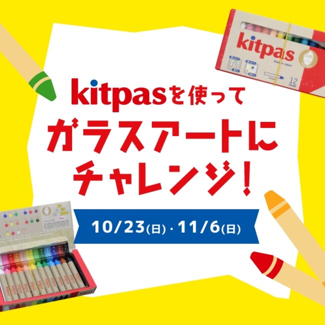 ガラス面に描けるクレヨンのような画材「キットパス」を使用したワークショップを開催いたします。大きなガラスに色を塗ったり、好きな絵を描いたりしてデコレーションができます。