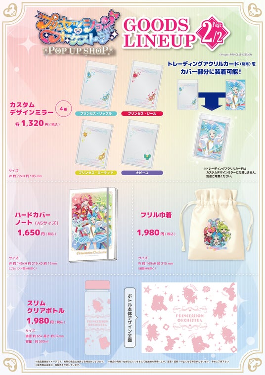 『プリンセッション・オーケストラ POP UP SHOP in OIOI』では、描き下ろしイラストを使ったグッズ販売のほか、スタンディパネル展示などの会場装飾もお楽しみいただけます。