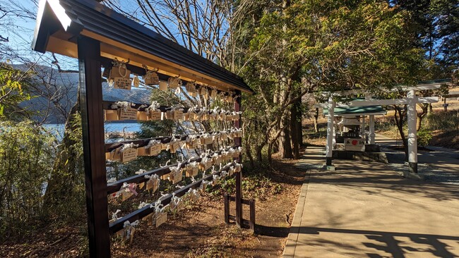 箱根九頭龍の森の入口から見える位置に鎮座する、白い鳥居と白い御社殿の白龍神社。昨今人気急上昇中の神社です。御祭神・白龍大神をお祀りする社で、家運・家庭運・家内安全・勝負運・金運・商売繁盛などのご利益があるといわれています。