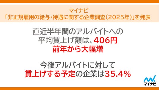 直近半年間のアルバイトへの平均賃上げ額は、406円で前年から大幅増。今後アルバイトに対して賃上げする予定の企業は35.4%。時給1500円以上への引き上げが現実的でない企業は7割超