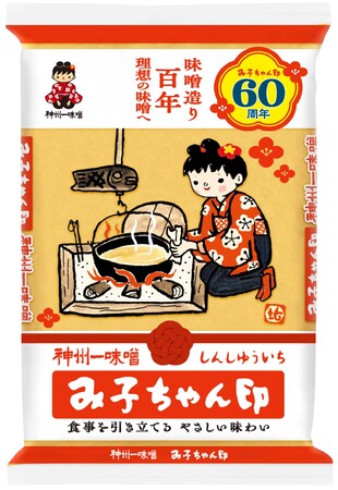 サッポロホールディングス(株)のグループ企業である神州一味噌(株)では、1963年発売のロングセラー商品『神州一味噌み子ちゃん』の発売60周年を記念して、周年パッケージを発売します。