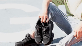 ボタンを押してダイヤルを右に回すと靴紐が締まりボタンを引っ張ると靴紐が緩む仕組みになっています。