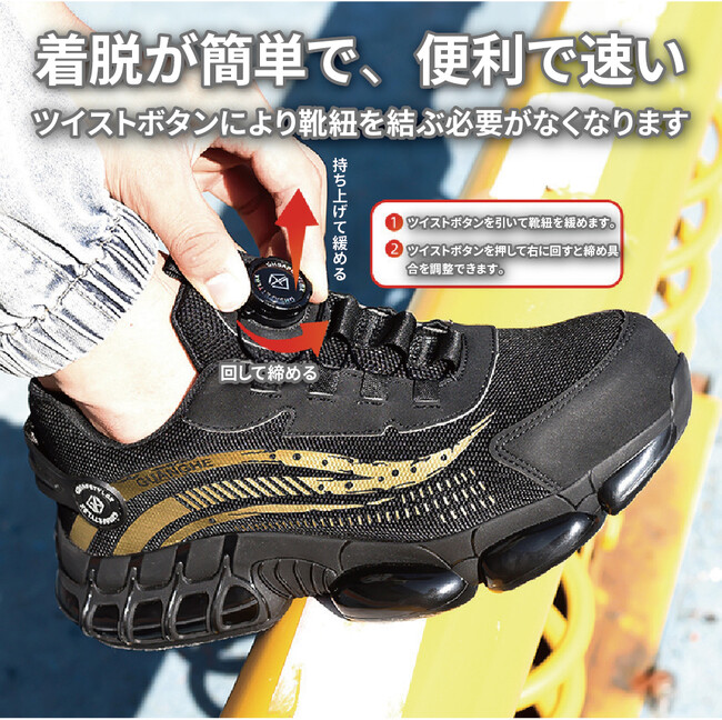 急に物が落ちてきたり、鋭い釘などの危険からもしっかりつま先を守ります。