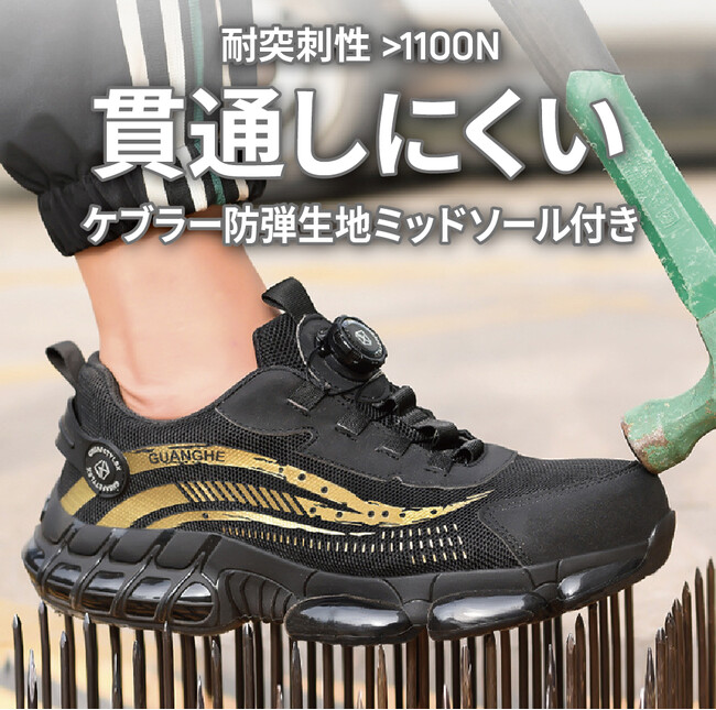 丈夫なケブラーを使用することで釘や尖ったものなどを踏んでしまった際に、靴底が貫通するのを防ぎます。