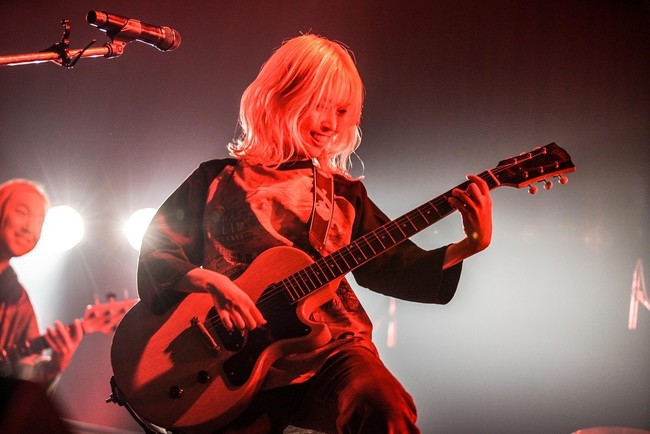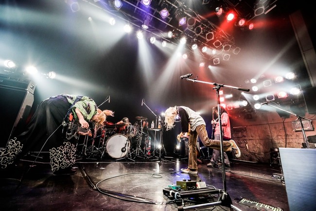 冒頭3曲を駆け抜けたバンドはこの夜最初のMCへ。客席とのハンドサインによる掛け合いで、ライブ初参加の観客が多いことを知った4人。komakiが「結成して4か月ですが、ワンマンはもう4回目。友だちが少ないからワンマンしかやれないわけじゃないですからね」とおどけると、メンバー全員が「なんだかもう泣けてきた」と自らのアルバムタイトルをもじったリアクションで応じるなど、ステージ上はアットホームなフリートークに。サウンドとは裏腹の人懐っこいメンバーのキャラクターでもオーディエンスを引っ張っていく。