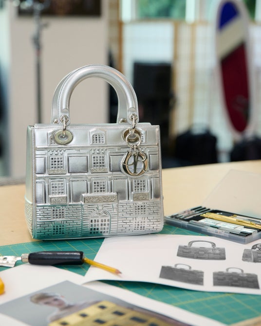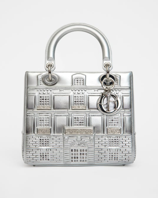 パリの本店「30モンテーニュ」がリニューアルオープンを迎えてから3年。それを記念して、ディオールは英国人アーティストのペニー・スリンガーを招聘し、永遠のアイコン「レディ ディオール」バッグを再考しました。この魅惑的な新しいコラボレーションは、2019年秋冬オートクチュール コレクション ショーのためにマリア・グラツィア・キウリとペニー・スリンガーの間に築かれたクリエイティブな対話と呼応します。このコレクションでペニー・スリンガーはクリエイティブ ディレクターとともに、ディオールの歴史的な住所であるモンテーニュ通りのタウンハウスを黄金のドールハウスのような魅力を持つユニークなクリエイションに変身させ、コレクションのラストルックとして登場させました。このコンセプトを追求する彼女は、この象徴的なファサードの建築様式を想起させるかつてないプロポーションの「レディディオール」を、シルバーのレザーでデザインしました。ディオールの魅力的な伝統と大胆なスピリットが融合したこの特別な作品は、クチュールとあらゆる芸術を結びつける力強いオマージュです。
