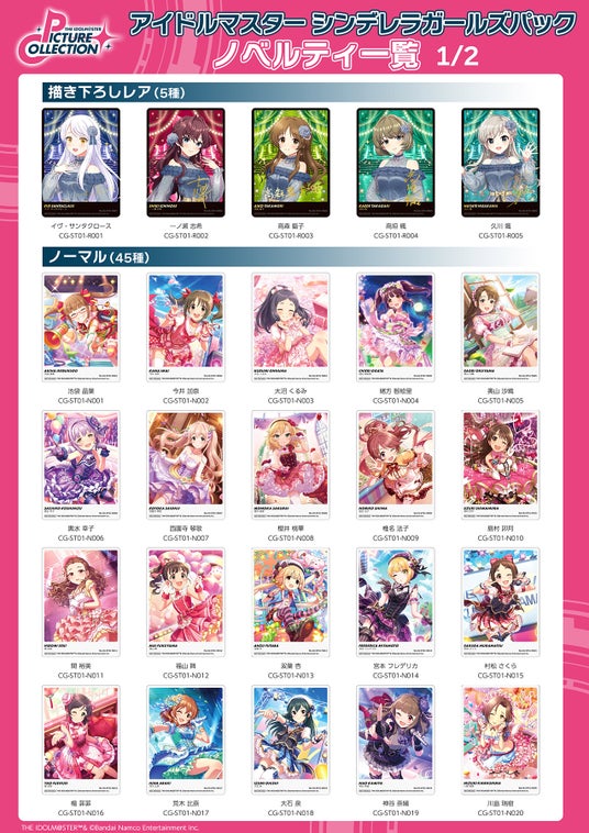 3.会期中に対象店舗で「アイドルマスター シンデレラガールズ」関連商品1点以上を含む、税込2,000円ご購入ごとに、購入特典として、「THE IDOLM@STER PICTURE COLLECTIONアイドルマスター シンデレラガールズパック」をランダムで1枚配布いたします。