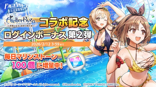 『ライザのアトリエ』コラボ第2弾開催を記念してコラボ記念ログインボーナスを開催いたします!毎日ログインして、マリンストーンをGETしよう!