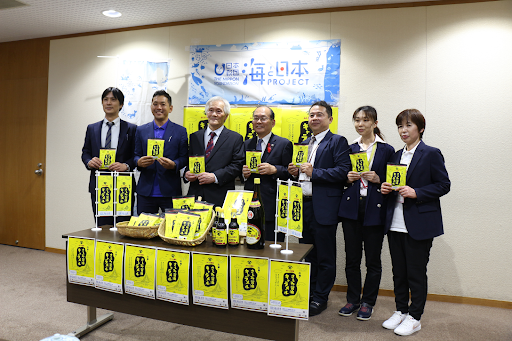一般社団法人海と日本プロジェクトinしまねは、浜田市観光協会、ふじもと醤油、森田製菓と連携し、島根県浜田市で愛される”おさしみ醤油”を使ったキャラメル「さしみ醤油キャラメル」を開発し、2023年11月6日に発売を開始しました。これを記念し同日、浜田市の久保田市長へのお披露目式を行いました。