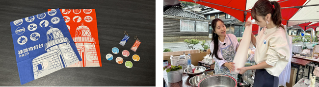 今回の開催に向けてオリジナルの灯台手拭いや缶バッチ、キーホルダーなどのグッズや、期間限定メニューとしてスイーツなどを開発しました。中でも、珠洲市の砂浜「大浜」周辺で栽培している、地元では”幻の大豆”とも呼んでいる「大浜大豆」を使った「豆乳ソフトクリーム」にオリジナルの「灯台クッキー」をトッピングしたスイーツは、お客様にも大好評でした。店内で上映した石川テレビの稲垣アナウンサーがナレーションのデジタル紙芝居「のろしやまぶしむかしのはなし」では、沢山の方に関心を持っていただくことができました。