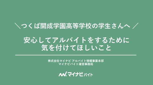 本授業を通して、つくば開成高等学校 上田学習センターの生徒の皆様が、犯罪に巻き込まれないよう、正しい情報と相談先することの大切さを知ってもらえたと思います。またその上で、アルバイトの経験を、未来へ向けたキャリア形成のための一つの手段として考えてほしいと思います。今後も高校生をはじめ、すべてのユーザーの方へアルバイト探しをより良いものにできるよう、精一杯サポートしてまいります。