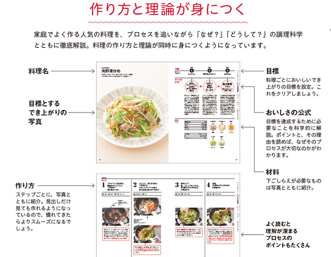 また、調理科学のルールを、よく家庭で作られる料理に落とし込み、他の料理にも応用できるようまとめており、毎日のごはんづくりにも役立てやすいのも特徴です。