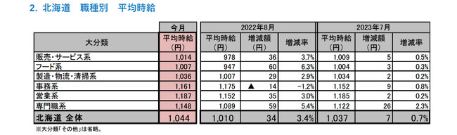 株式会社リクルート(本社:東京都千代田区、代表取締役社長:北村 吉弘)の調査研究機関『ジョブズリサーチセンター(JBRC)』(https://jbrc.recruit.co.jp/)が、2023年8月度の「北海道版 アルバイト・パート募集時平均時給調査」をまとめましたので、ご報告致します。