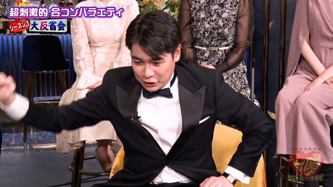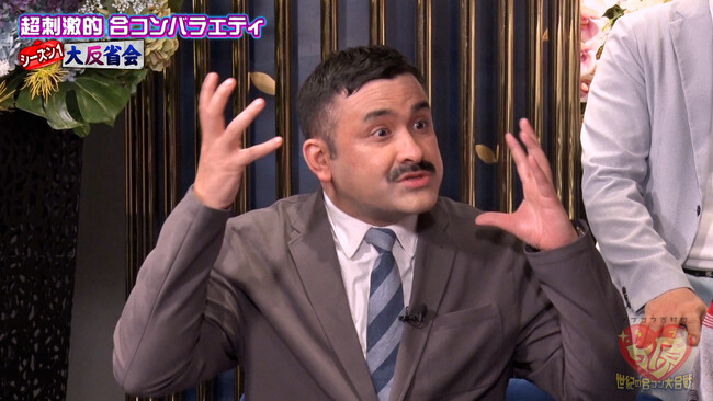 そんな合コンに参加した男性3チームは、若手イケメン「ムラジュン、Everybody・タクトOK!!、入間国際宣言・千葉ゴウ」、グローバル「植野、マチルダ・グチヤマ、たまゆらレスト・りゅうのすけ」、吉村軍団「熊谷、5GAP・トモ、三瓶」と個性たっぷりのメンバーばかり。当時、メンバーを見た胸中を問われた植野は「(メンツ的に)吉村軍団とグローバルの凡戦があるんだろうなと思っていました」と本音を明かして笑いを誘います。