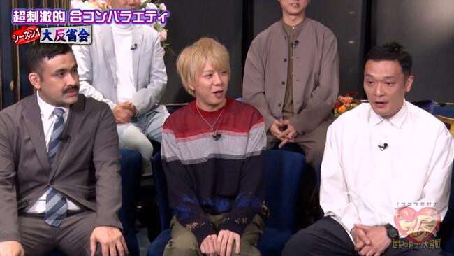 その後も、女性陣の印象、序盤から空気が悪くなった吉村軍団のやりとり、植野が情報収集した際、伊藤俊介(オズワルド)らから「これでスベったこと1回もない」と教えてもらった合コンゲームがうまくいかなかったことなど、反省していきます。