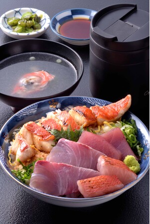 室戸岬へと向かう路線バス旅の途中で立ち寄った老舗『料亭花月』(高知県)の「室戸キンメ丼」(1800円)。