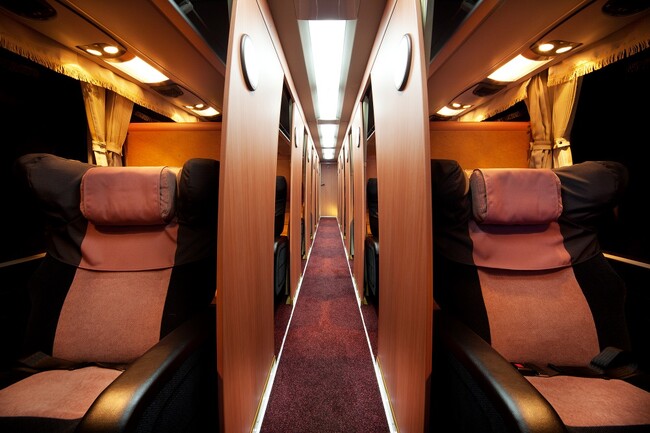 海部観光「マイ・フローラ」(東京~徳島)は、国内最高水準を謳う広い個室スペースと、155度まで倒れるリクライニングシートが魅力。