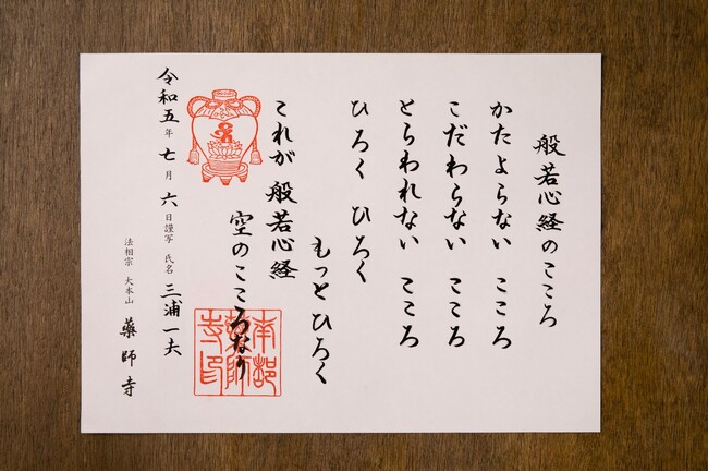 7月6日発売の『サライ』8月号のとじ込み付録は、「薬師寺お写経『般若心経のこころ』」。