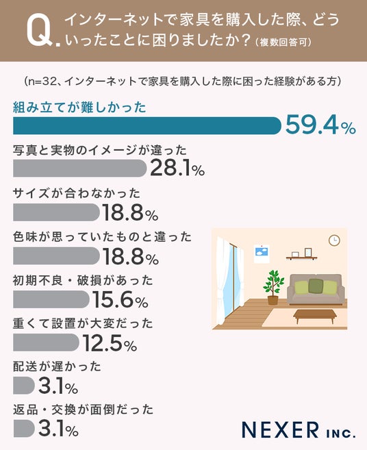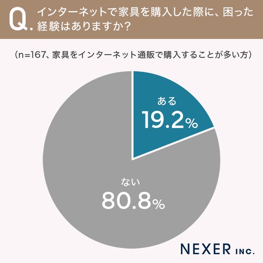 インターネット通販で家具を購入した際に、困った経験があるかどうかについても調査しました。