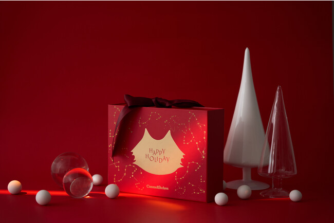 幸せを運ぶといわれているネコをモチーフにしたBOXと、メッセージカードと共にホリデーシーズンを彩ります。
