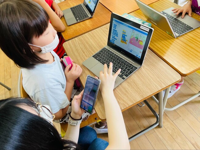 今回のプログラミング授業はScratch(プログラミング言語)を使用し、プログラミングの基礎理解から、キャラクターを動かしてゲームを作るまでの過程を、実際にパソコンを使って子どもたちが楽しく学べるような内容となっています。