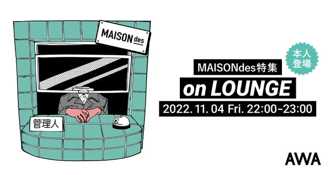 AWA株式会社(本社:東京都港区、代表取締役CEO:冨樫晃己)が運営する、サブスクリプション型(定額制)音楽ストリーミングサービス「AWA(アワ)」は、2022年11月4日(金) 22:00~23:00の1時間に渡り、無料で誰でも参加できるオンライン空間「LOUNGE(ラウンジ)」で、架空のアパート音楽プロジェクトMAISONdesの管理人がチャットで参加する、MAISONdes特集ラウンジを開催いたします。